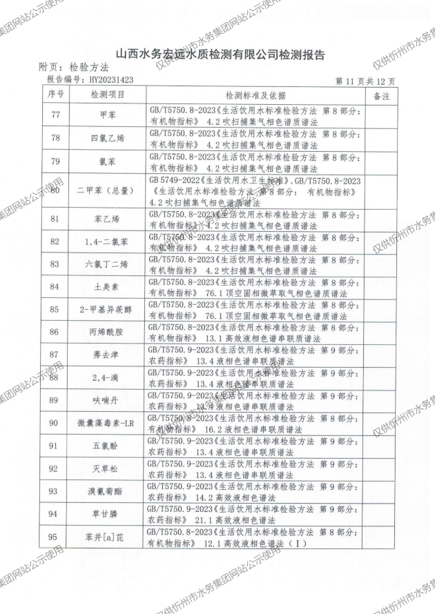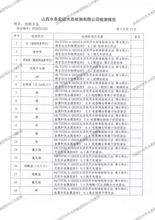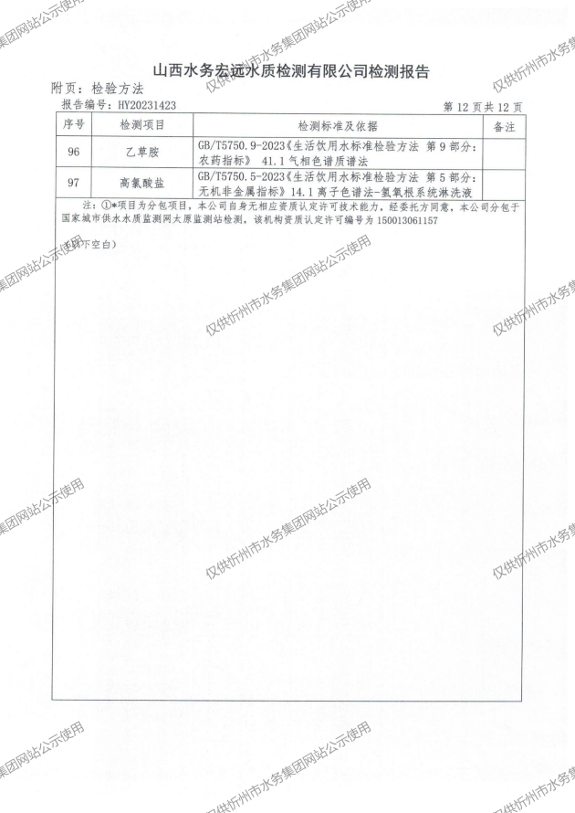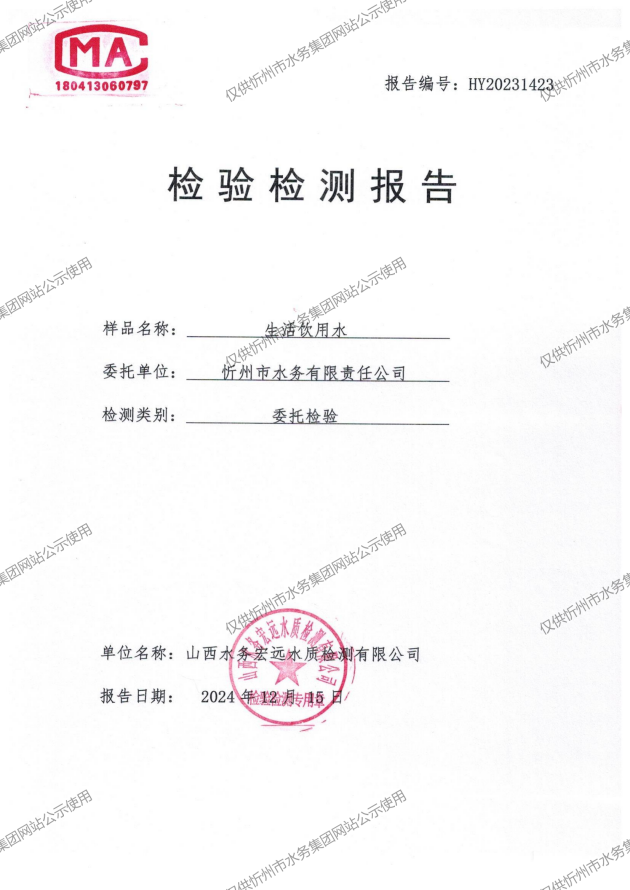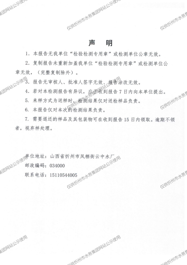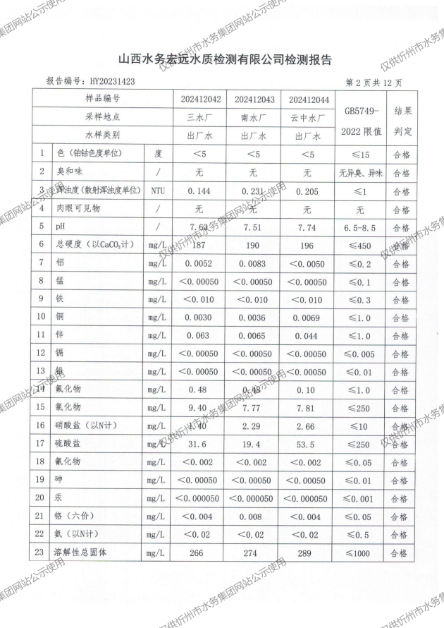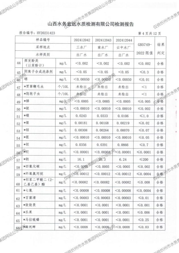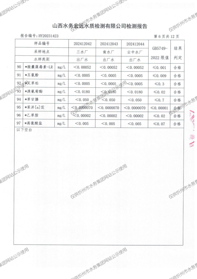 2024年忻州城區(qū)公共供水南水廠、三水廠、云中水廠出廠水97項水質(zhì)全分析