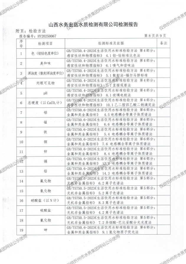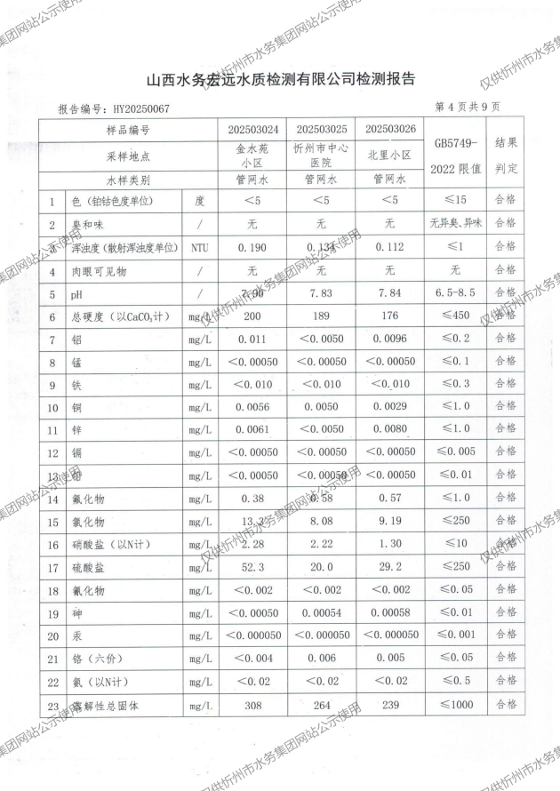 忻州城區(qū)公共供水水源水、出廠水、管網(wǎng)水、管網(wǎng)末梢水2025年3月份水質(zhì)信息公示
