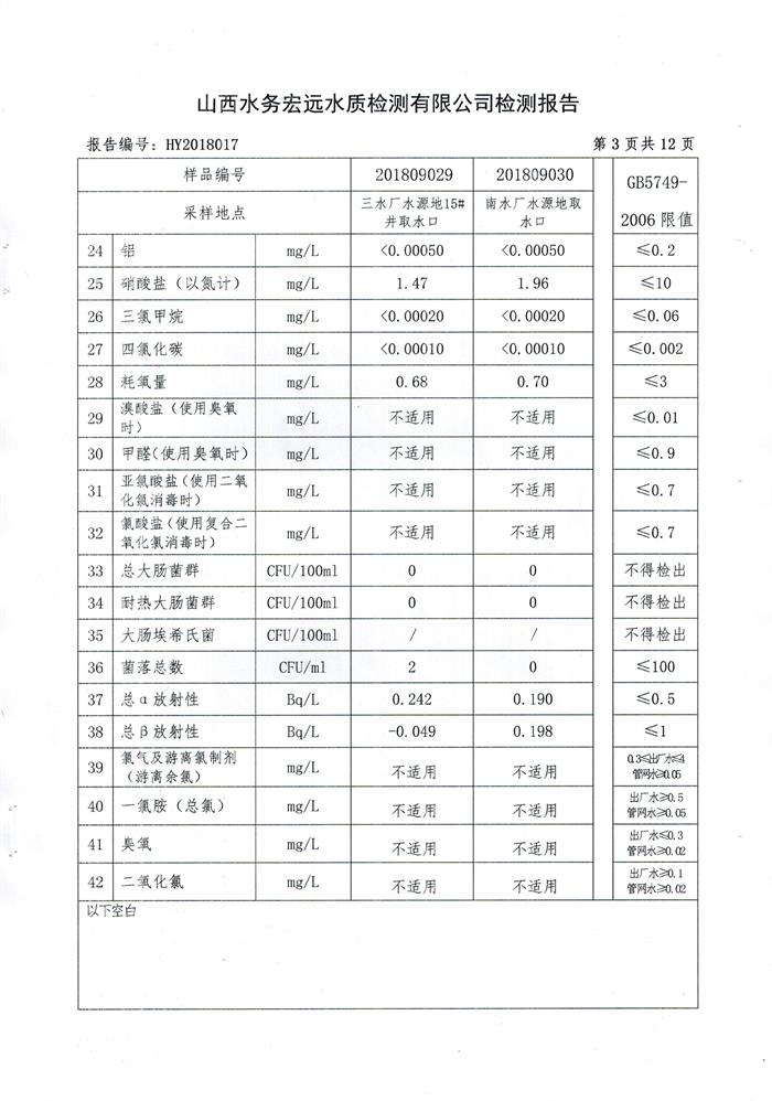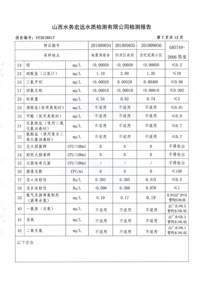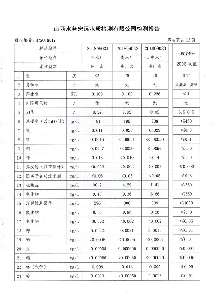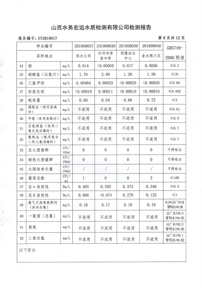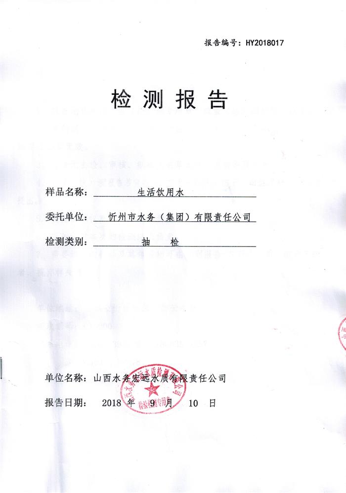 忻州城區(qū)公共供水水源水、出廠(chǎng)水、管網(wǎng)水、管網(wǎng)末梢水2018年9月份水質(zhì)信息公示