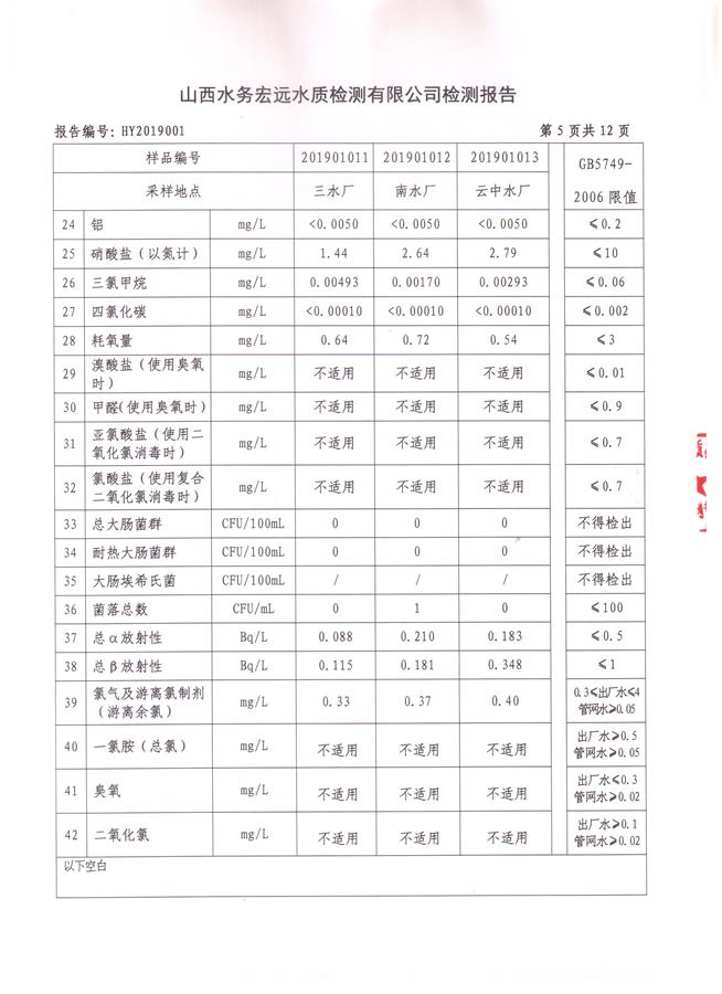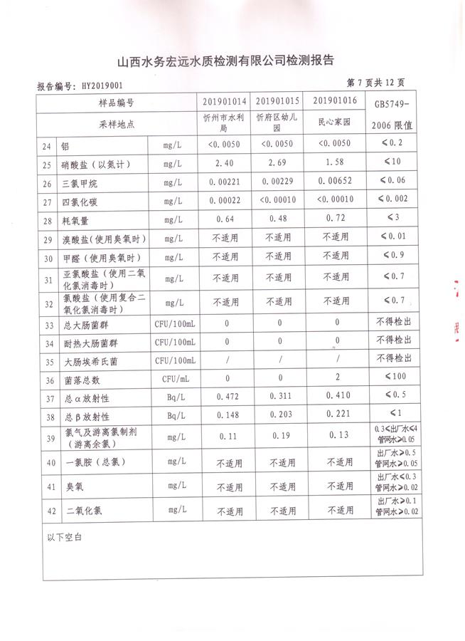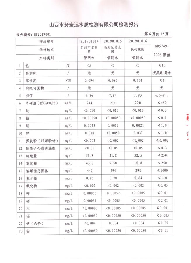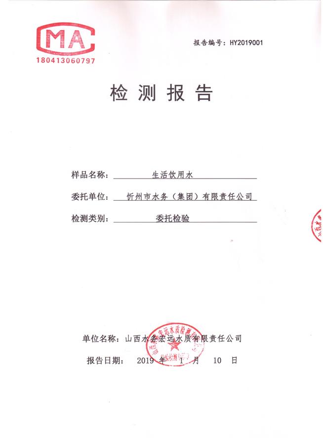 忻州城區(qū)公共供水水源水、出廠水、管網(wǎng)水、管網(wǎng)末梢水2019年1月份水質(zhì)信息公示