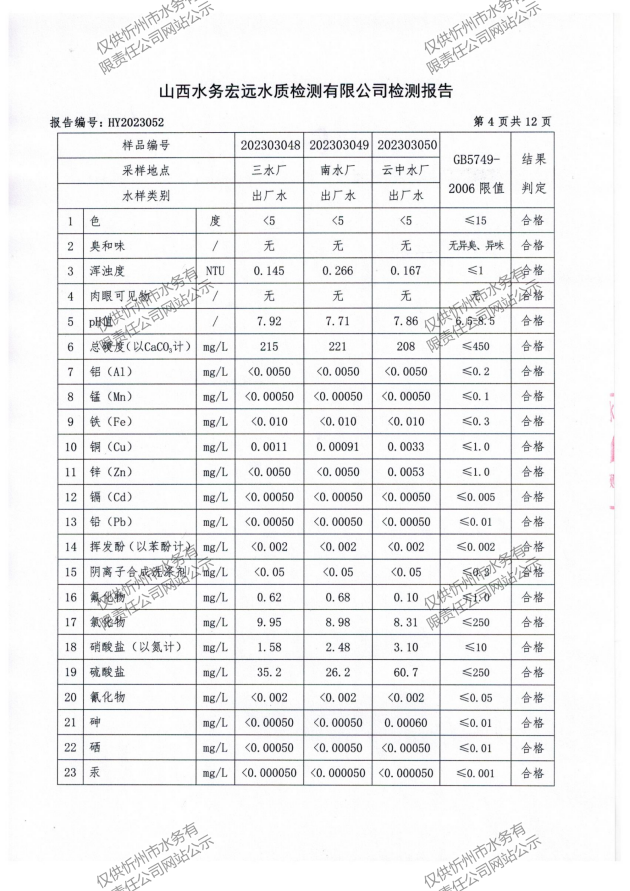 忻州城區(qū)公共供水水源水、出廠(chǎng)水、管網(wǎng)水、管網(wǎng)末梢水2023年3月份水質(zhì)信息公示